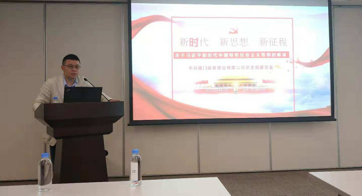 2018年10月23日,开云网页版·官方站在线登入-开云(中国)党总支书记程东方同志在建发大厦23楼4号会议室以《新时代、新思想、新征程——关于习近平新时代中国特色社会主义思想的解读》为主题给纸业公司的党员们做了一次专题党课分享。